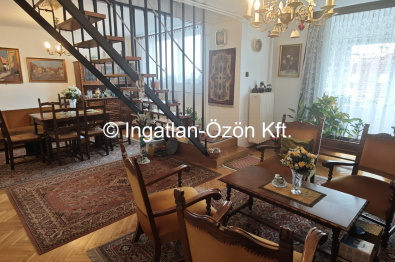 Ahol a lakás található ezt a szintet 1984-ben építették rá az eredeti épületre. A lakás alsó szintjén található egy előszoba (4m2), konyha (11m2), fürdőszoba (3m2), Wc, valamint a tágas nappali + étkező és egy kis télikert is, ami közel 40 m2 összterületű. A nappaliból vezet fel egy lépcső az emeleti részbe. Itt ki lett alakítva két hálószoba (12m2 és 17 m2) valamint egy fürdőszoba wc-vel (4m2) és egy...